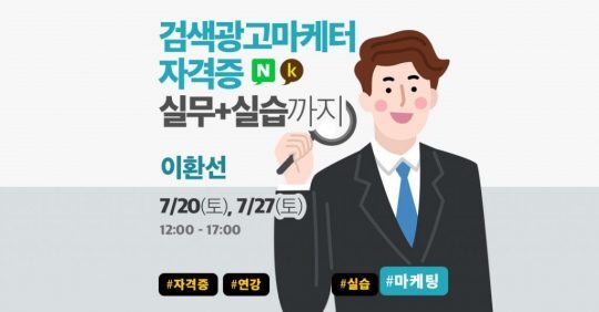 검색 광고 마케터 자격증은 개인의 검색 광고 집행 능력을 검증하는 자격시험입니다. 능력있는 마케터가 되고 싶다면, 경험있는 마케터가 되고 싶다면 현업 검색 광고 최고수, BALC.INC.의 대표이사 이환선 님께 딱 10시간만! 투자해 보세요.