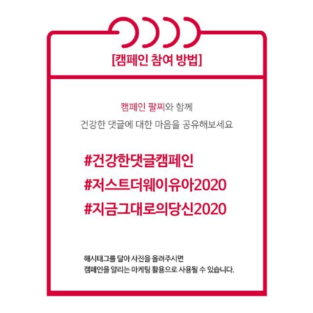 이번 캠페인은 SNS 인플루언서들과 함께 진행된다. 인플루언서가 소개하는 사이트에서 라이브리 팔찌 구매가 가능하며 취지에 동참하고자 하는 이용자들에게 한정 수량 판매된다. 인증샷과 함께 #건강한댓글캠페인 #저스트더웨이유아2020 #지금그대로의당신2020 해시태그를 사용한 콘텐츠를 SNS(페이스북, 인스타그램, 유튜브)에 업로드하면서 주변 지인에게 캠페인을 알릴 수 있다.