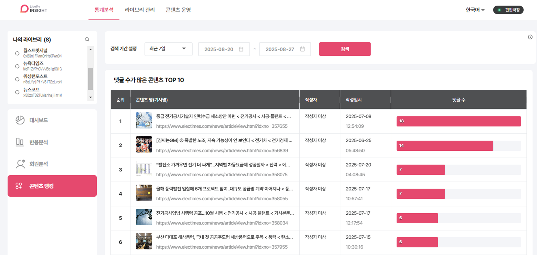 이제 단순한 댓글 수를 넘어, 독자들의 진짜 관심사와 여론의 흐름을 데이터로 직접 확인하고 업무에 활용해 보세요.