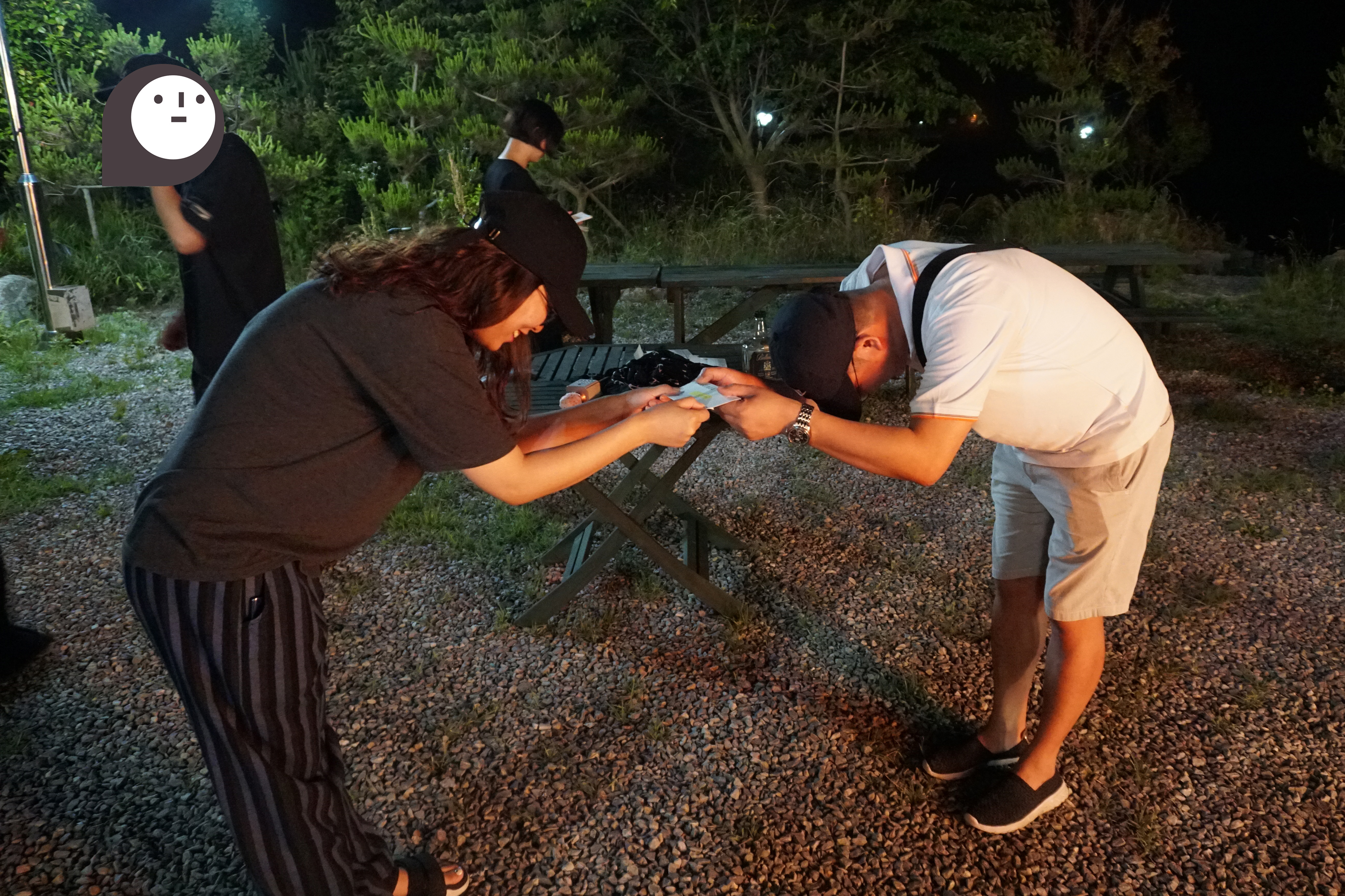 마지막으로 캠프 파이어 앞에서 단체 사진을 촬영한 뒤에